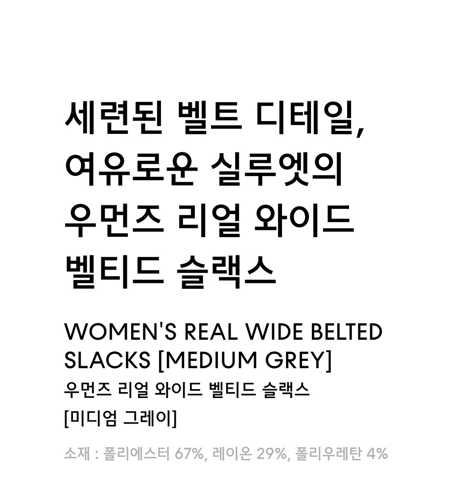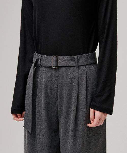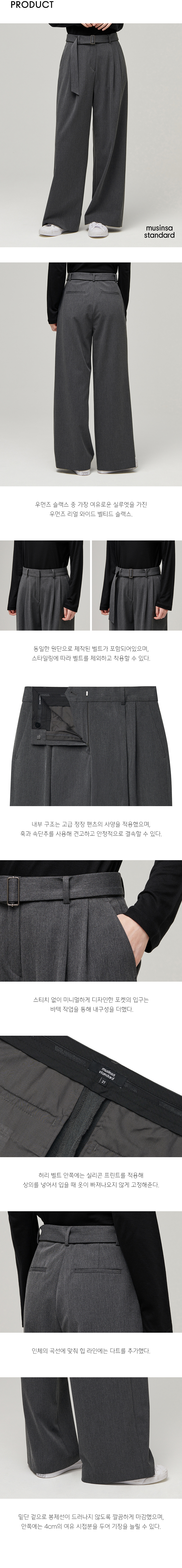 우먼즈 리얼 와이드 벨티드 슬랙스 [미디엄 그레이]
