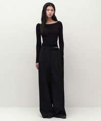 우먼즈 리얼 와이드 벨티드 슬랙스 [블랙]
