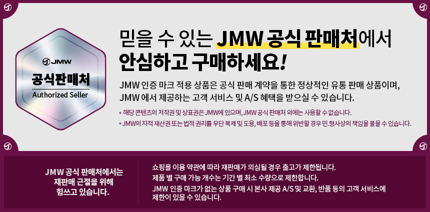 제이엠더블유(JMW)는 항공 모터 드라이기로 잘 알려진 미용 가전 브랜드입니다. 모든 제품을 국내에서 직접 생산하고 관리하며, 한발 앞선 기술력과 품질로 시장을 이끄는 브랜드입니다.