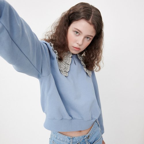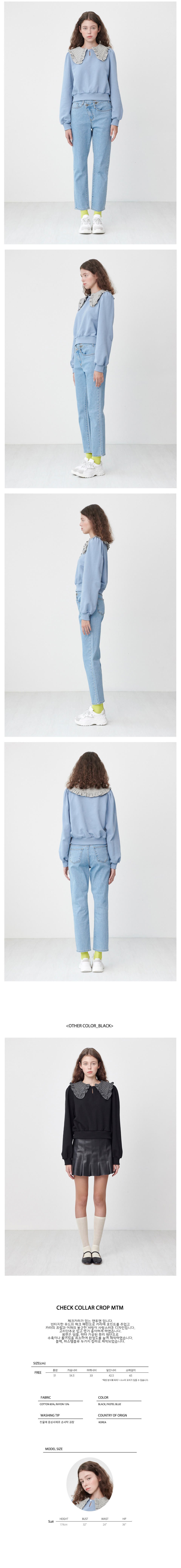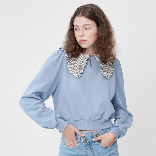 체크 카라 크롭 맨투맨 [파스텔 블루]