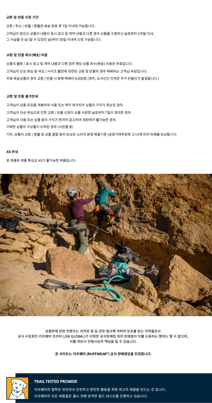 러프웨어(RUFFWEAR)는 그 이름만으로도 애견용품을 대표하는 최고급 브랜드로 미국 오리건주 밴드에 위치했습니다. 러프웨어의 철학은 개와 사람이 동료애를 느끼며 아웃도어 활동을 안전하고 편안하게 할 수 있는 최고급 아웃도어 애견용품을 만드는 것이며, 이를 위해 제품의 디자인, 소재를 그 목적에 맞게 설계/제작하고 있으며 지속적인 제품 개발을 통해 최고의 애견용품 업체로의 위상을 굳건해 하고 있습니다.