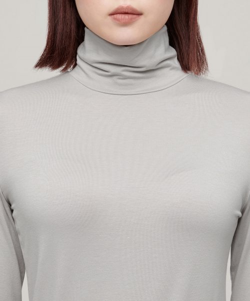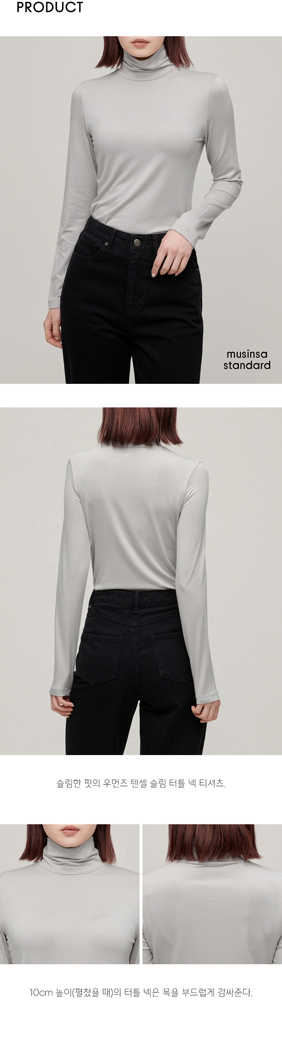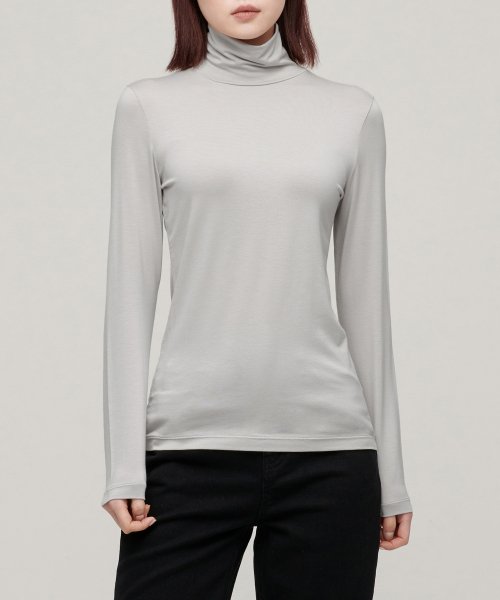 우먼즈 텐셀 슬림 터틀 넥 티셔츠 [라이트 그레이]