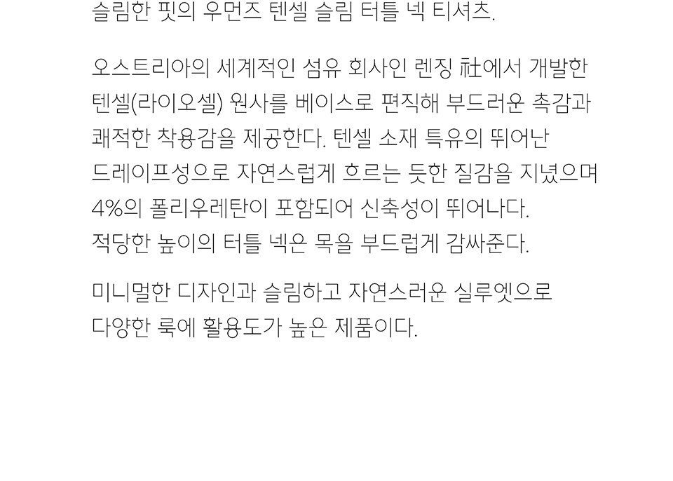 우먼즈 텐셀 슬림 터틀 넥 티셔츠 [블랙]