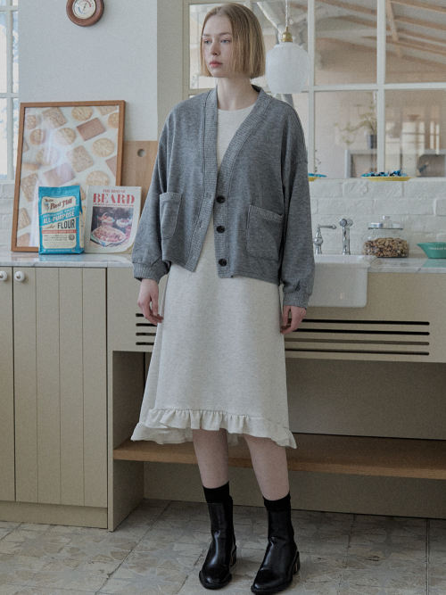 Overfit Basic Knit Cardigan - Grey