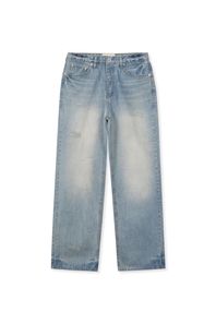 와이드 브러쉬 워싱 데님 미디엄 블루