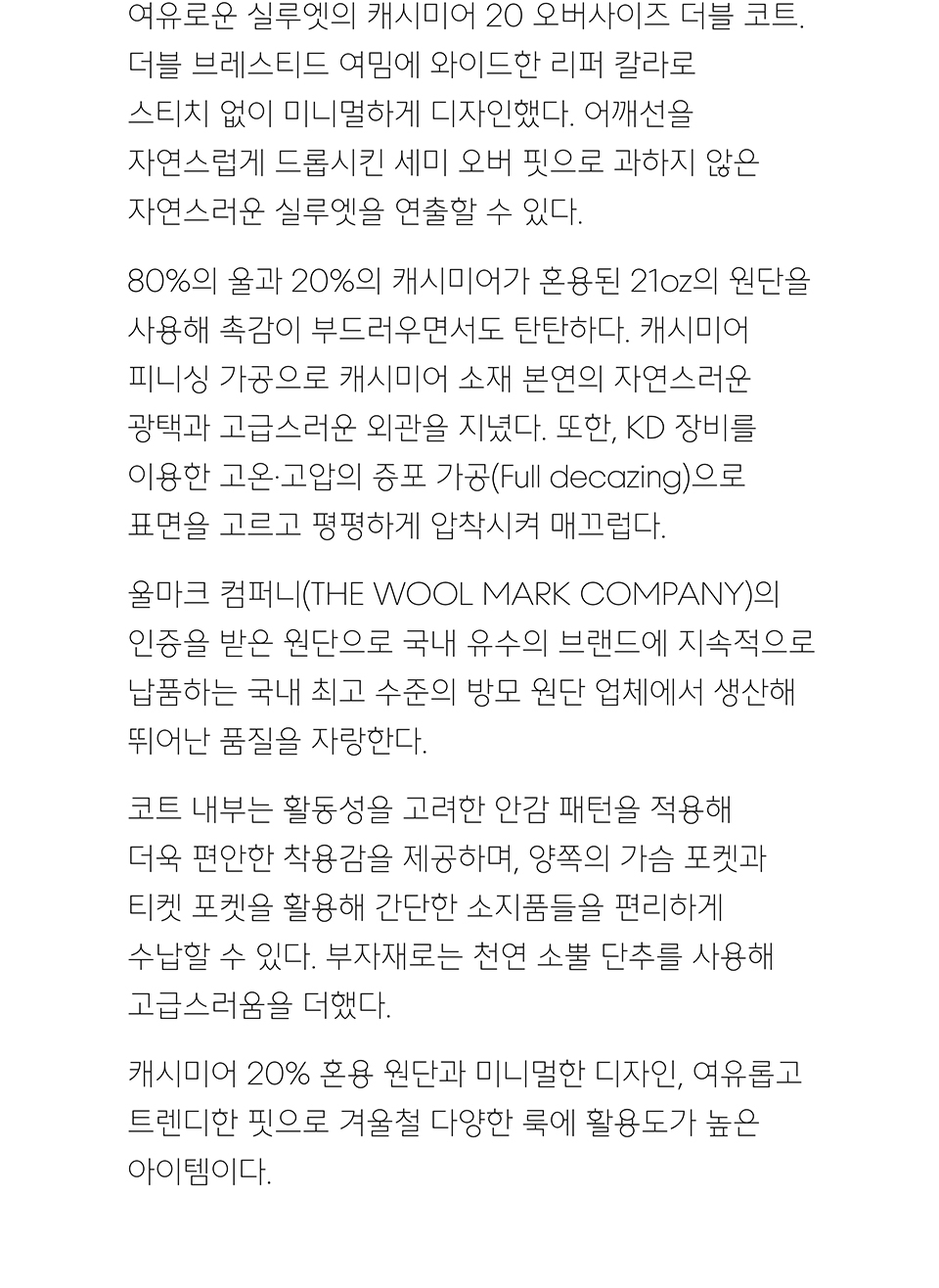 [프리미엄] 캐시미어 20 오버사이즈 더블 코트 [모카]