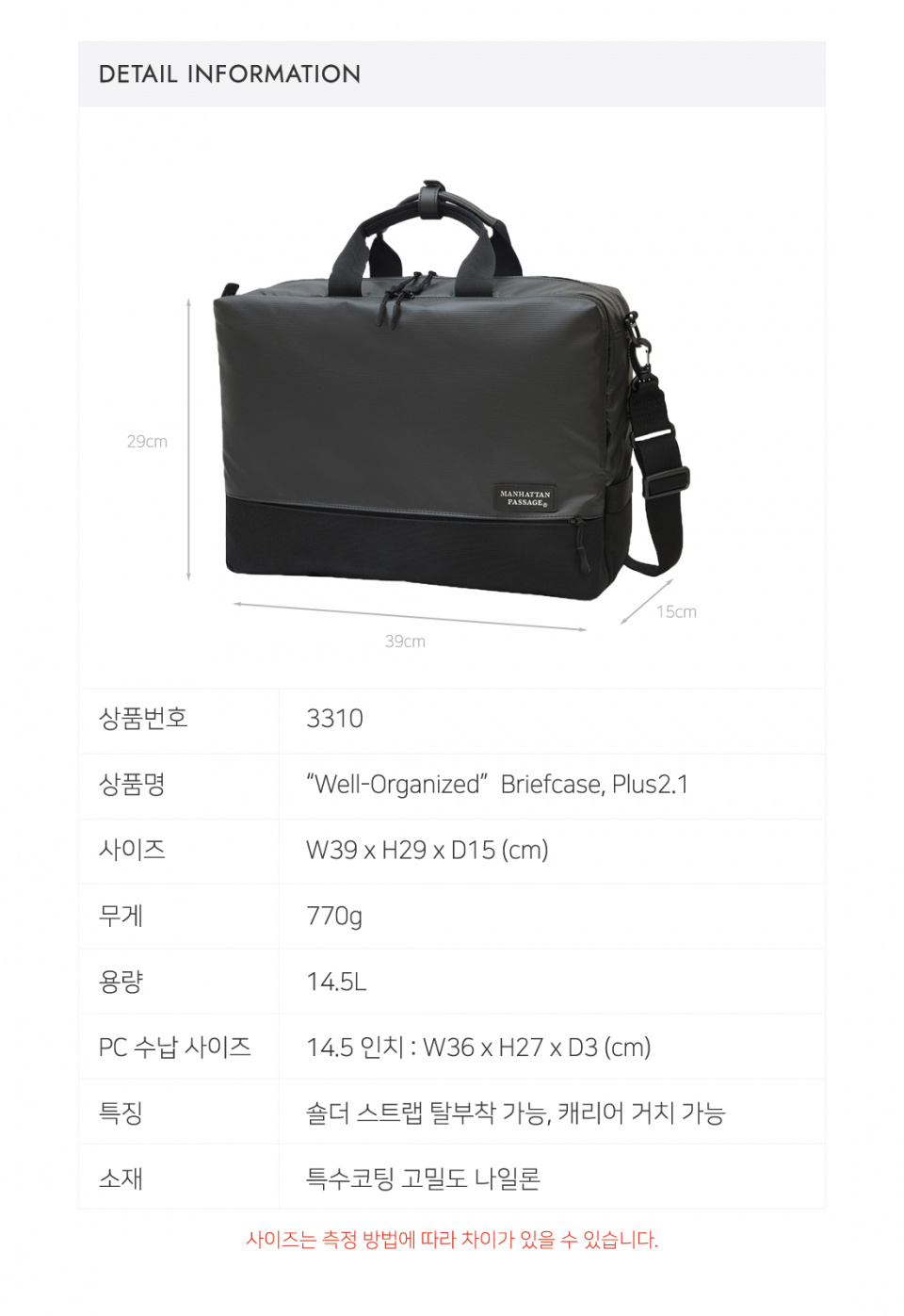 MANHATTANPASSAGE(맨하탄페세지)는 일본 내 품질과 디자인을 인정받아 비즈니스 백 판매 부분 상위에 랭크되어있는 40년 전통의 브랜드입니다.