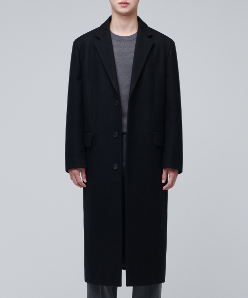 [이도현 PICK] 캐시미어 블렌드 대디 숄더 싱글 롱 코트 [블랙]