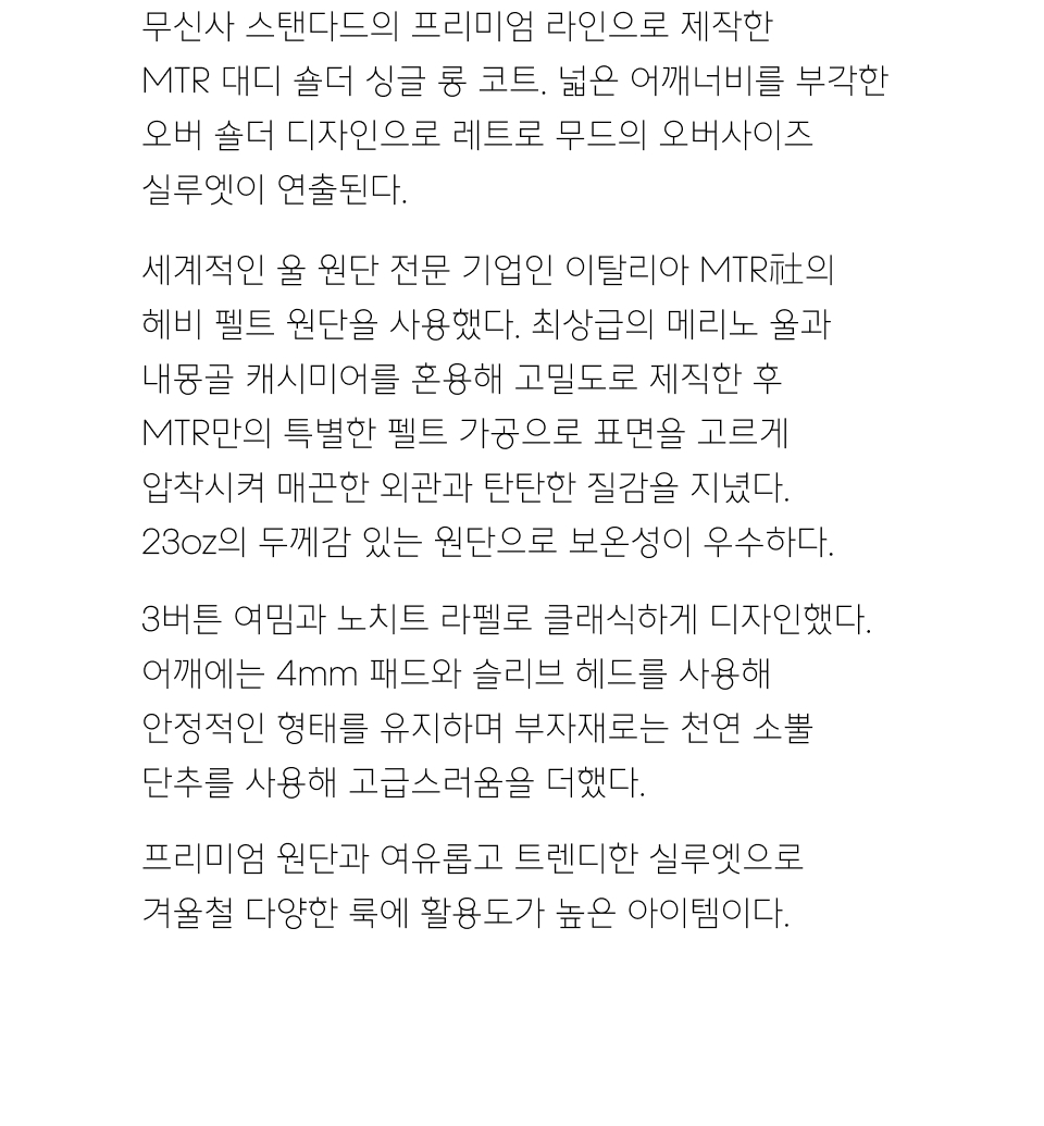 MTR 대디 숄더 싱글 롱 코트 [블랙]