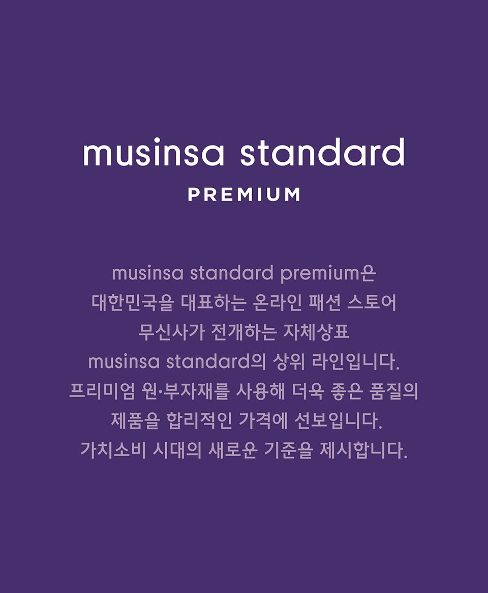 무신사 스탠다드(MUSINSA STANDARD)는 대한민국을 대표하는 온라인 패션 스토어 무신사가 전개하는 자체상표(Private Brand)이며, 모던 베이식 캐주얼웨어를 지향합니다. 단순한 유통구조의 효율적인 운영으로 좋은 품질의 제품을 합리적인 가격에 선보입니다. 가치소비 시대의 새로운 기준을 제시합니다.