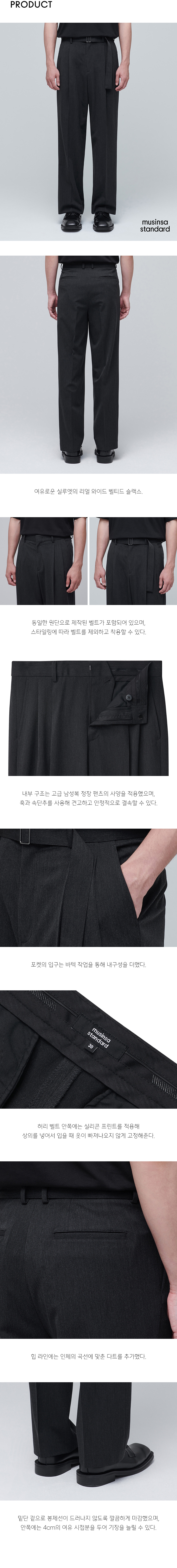 리얼 와이드 벨티드 슬랙스 [차콜 그레이]