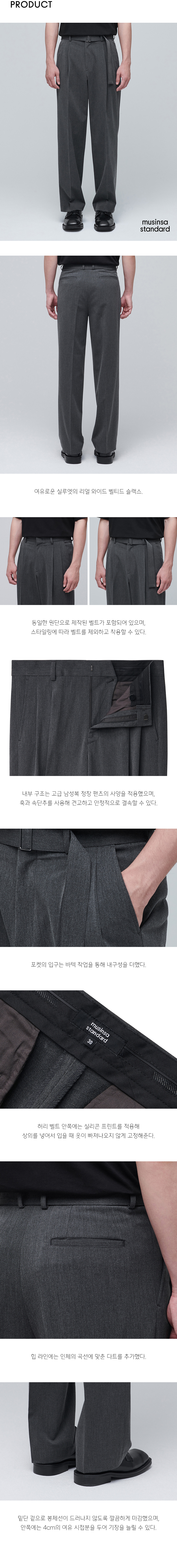 리얼 와이드 벨티드 슬랙스 [미디엄 그레이]