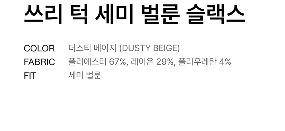 쓰리 턱 세미 벌룬 슬랙스 [더스티 베이지]