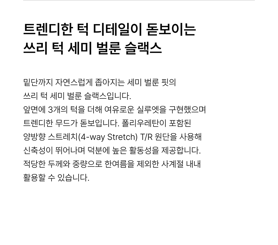 쓰리 턱 세미 벌룬 슬랙스 [블랙]