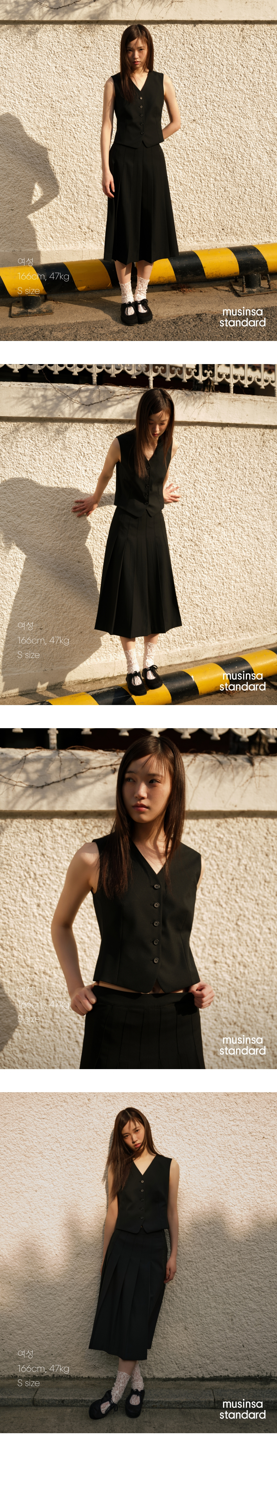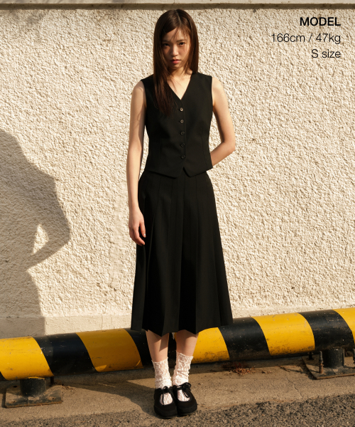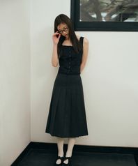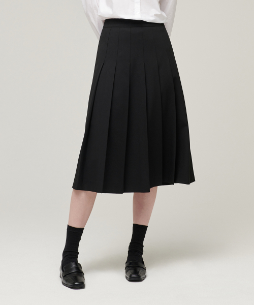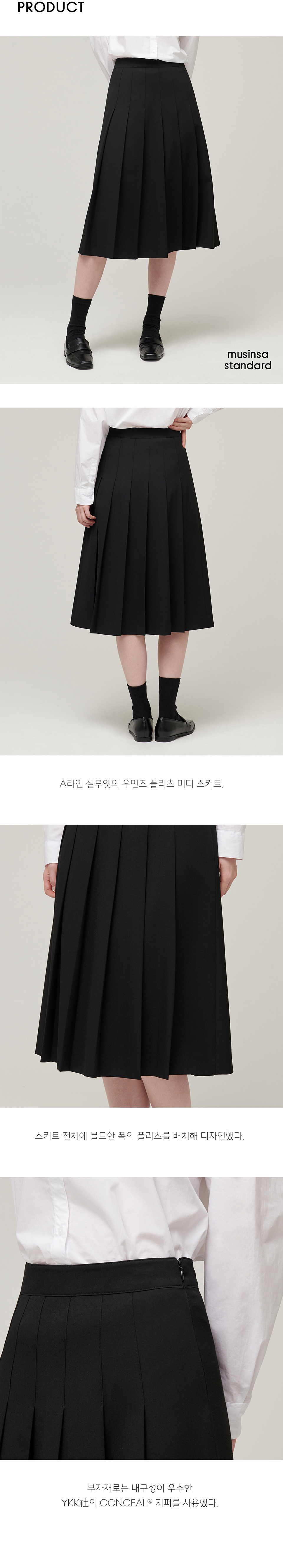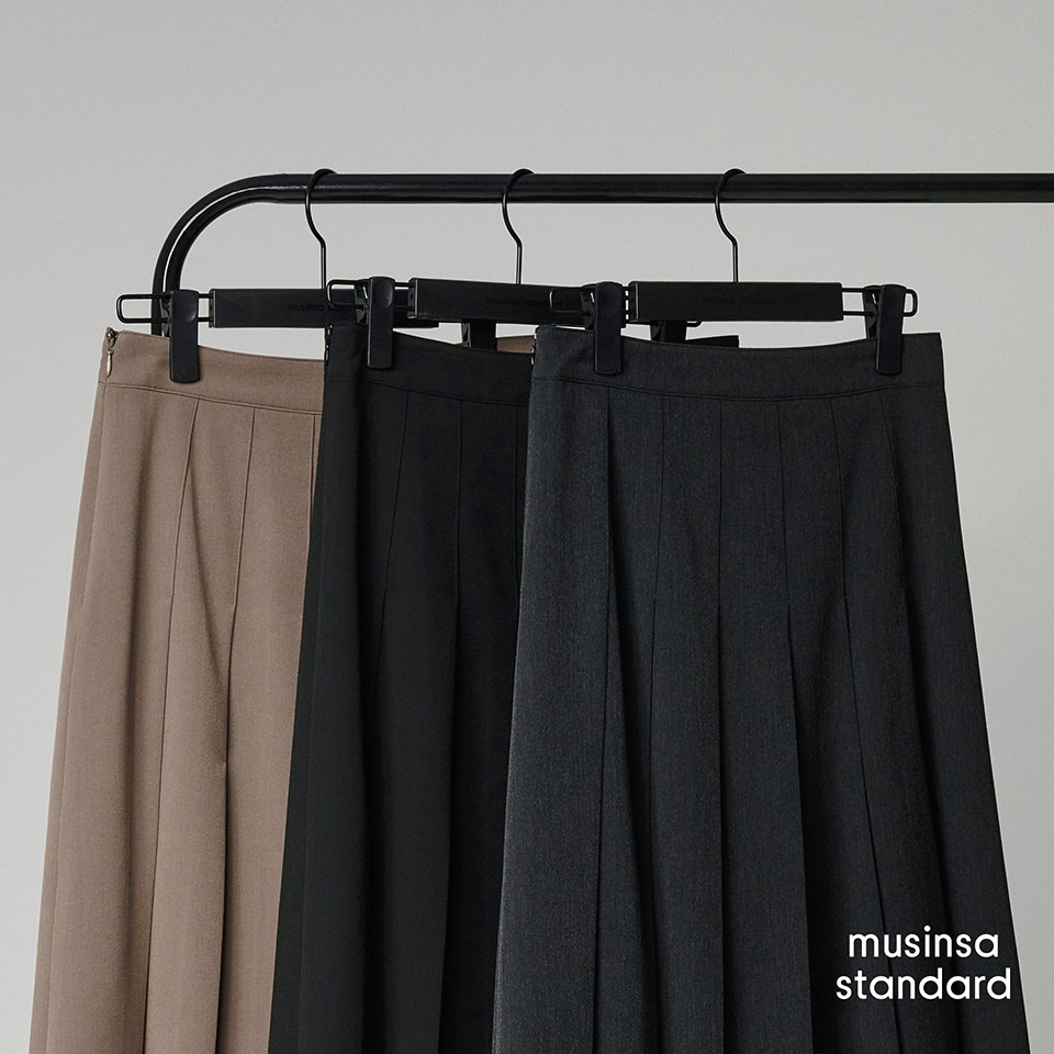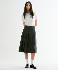 우먼즈 플리츠 미디 스커트 [차콜 그레이]