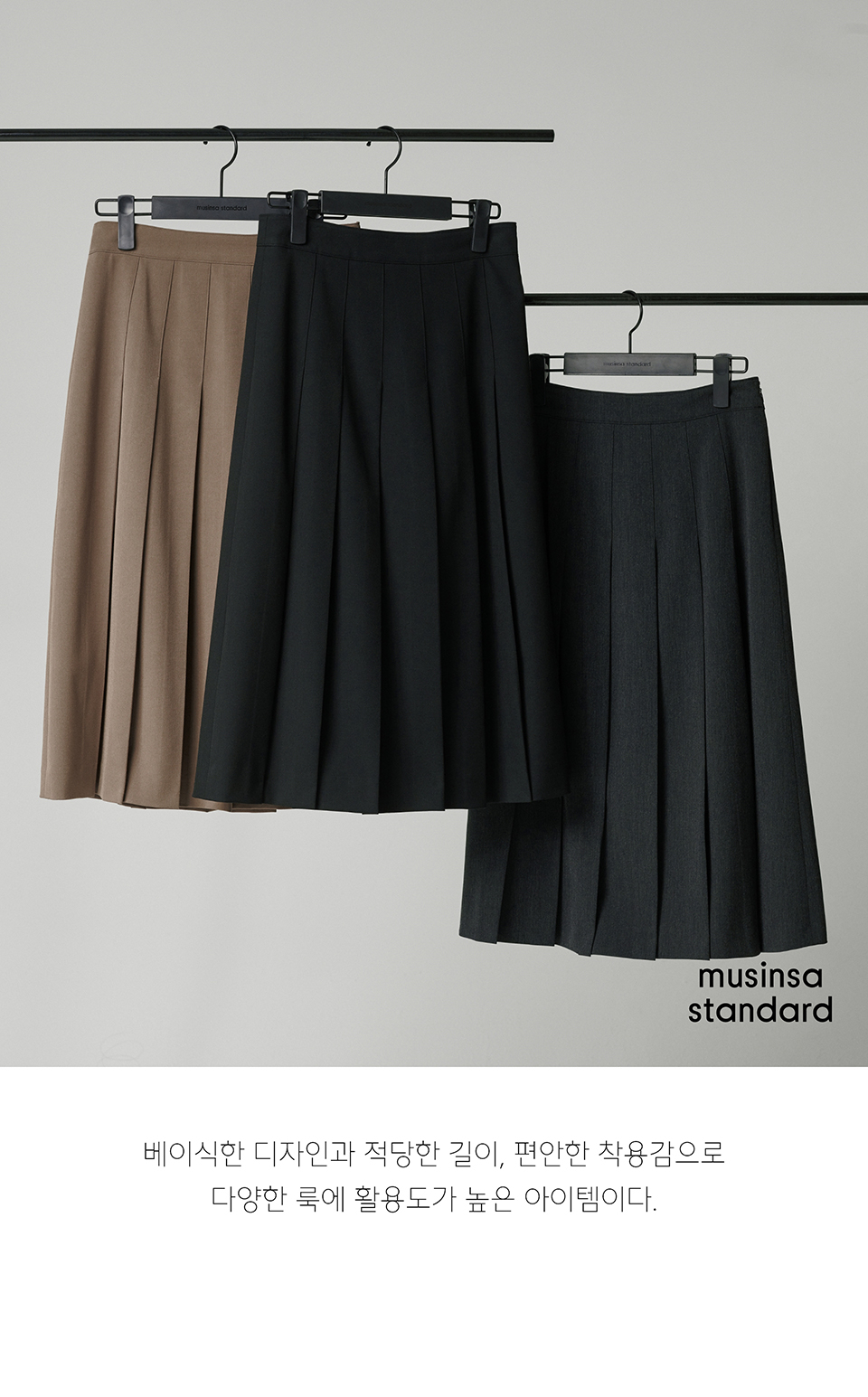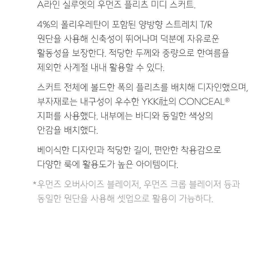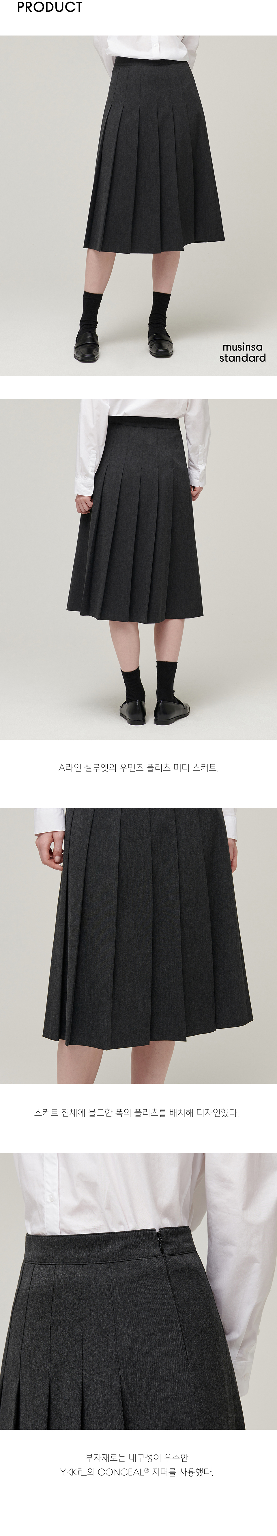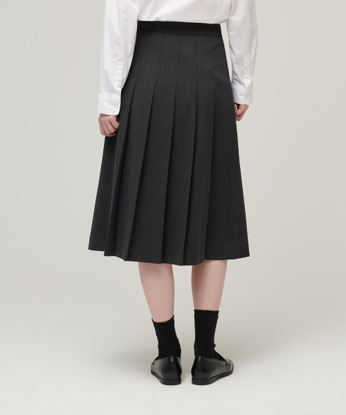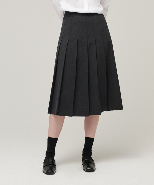 우먼즈 플리츠 미디 스커트 [차콜 그레이]