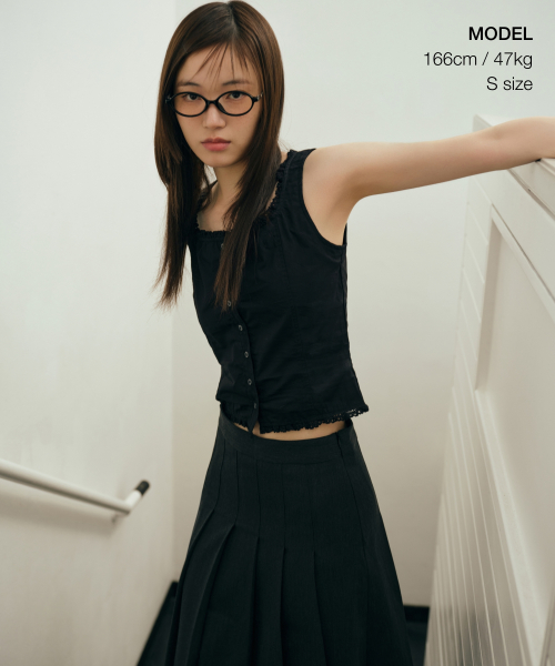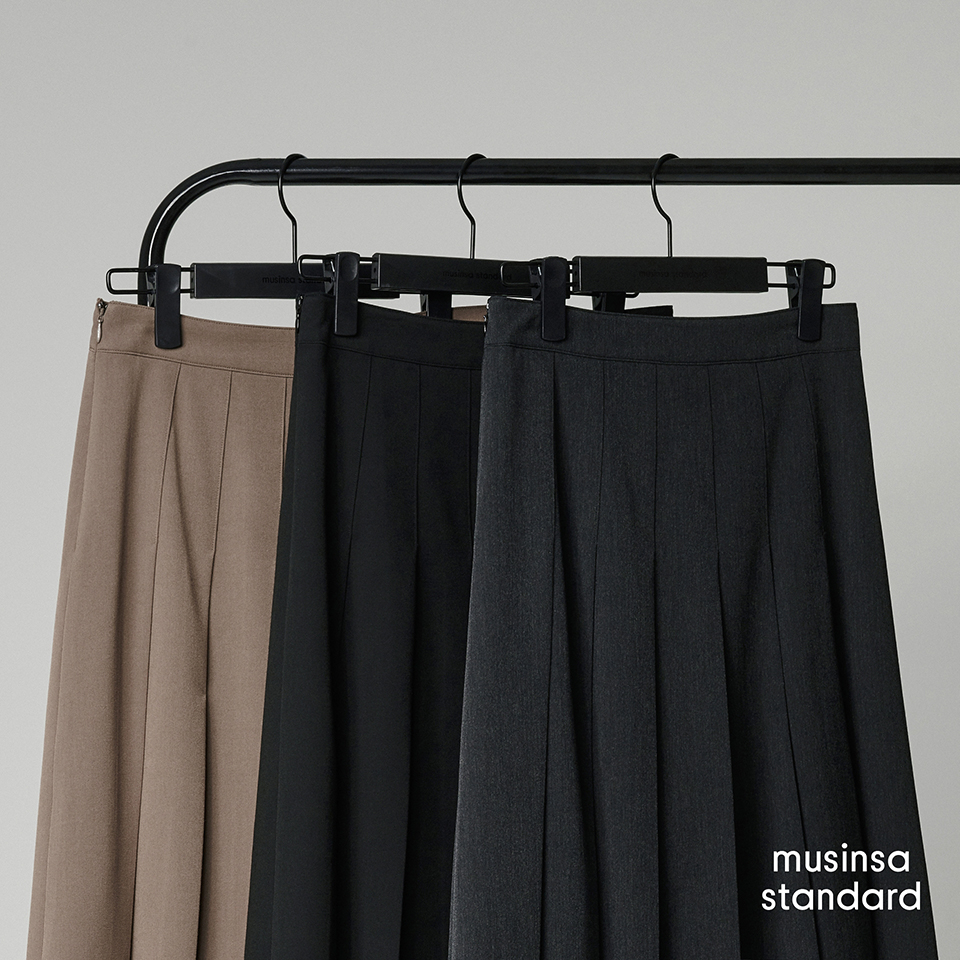 우먼즈 플리츠 미디 스커트 [블랙]