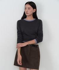 우먼즈 울 텐셀 레이어드 슬림 긴소매 티셔츠 [차콜 그레이]