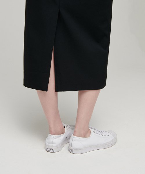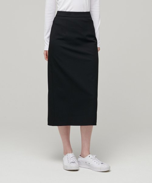 우먼즈 하이 웨이스트 슬릿 롱 스커트 [블랙]