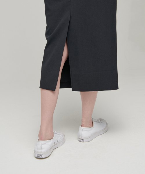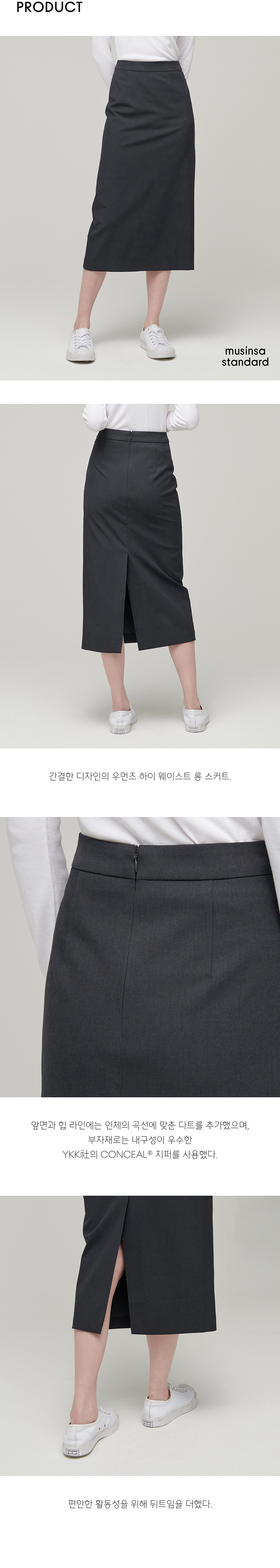 우먼즈 하이 웨이스트 롱 스커트 [그레이]