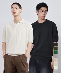 (카라 OR 라운드) 린넨라이크 하프 니트 2종