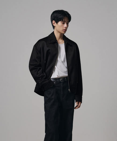 오버핏 풀업 스웨이드 싱글 자켓 BLACK