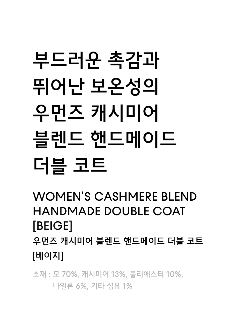 우먼즈 캐시미어 블렌드 핸드메이드 더블 코트 [베이지]