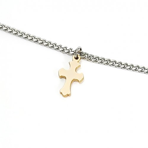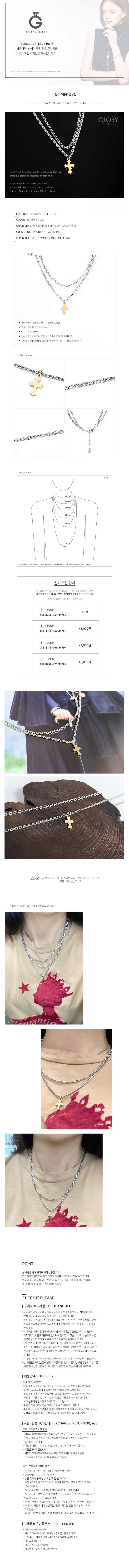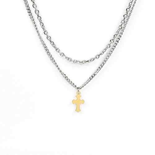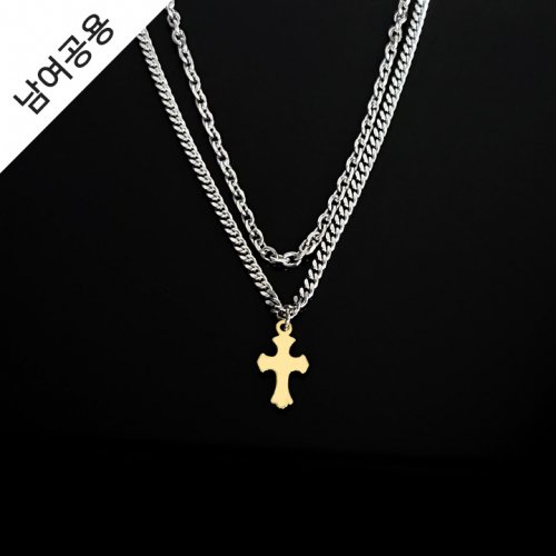 [남여공용] 써지컬스틸 두줄 골드십자가 포인트 목걸이 / GHMN-275
