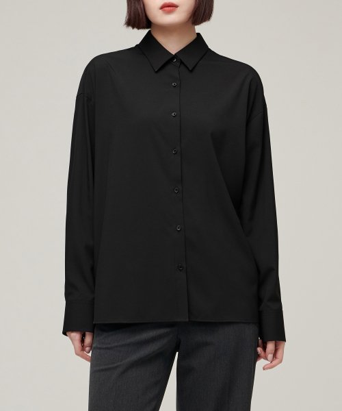 우먼즈 오버사이즈 실키 셔츠 [블랙]