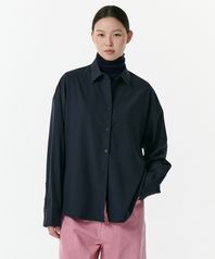 우먼즈 오버사이즈 실키 셔츠 [다크 네이비]