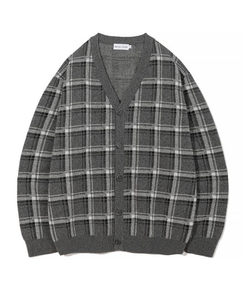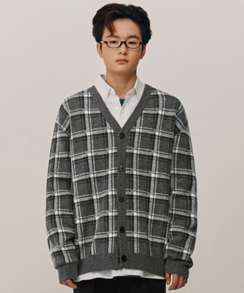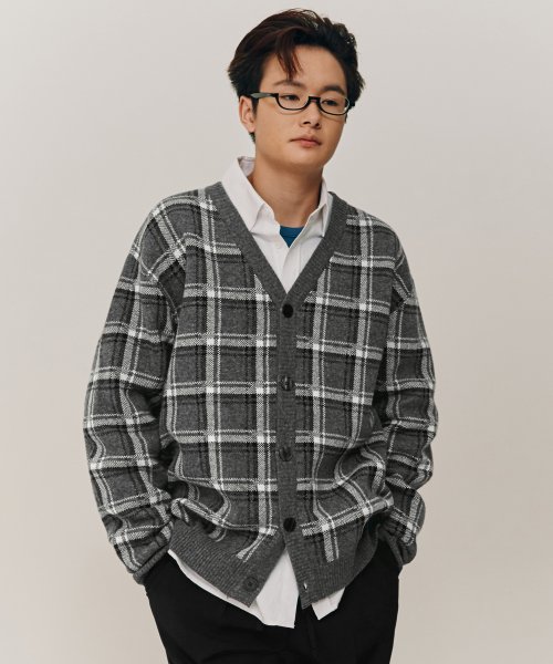 타탄 체크 램스 울 니트 가디건 그레이 COOSCD012GRAY