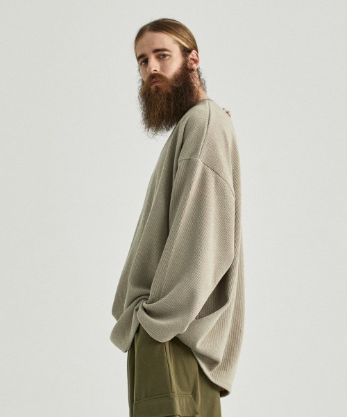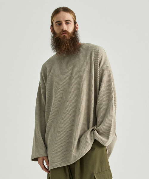 브러쉬드 투 턱 와이드 히든 밴딩 슬랙스 [카키 베이지]