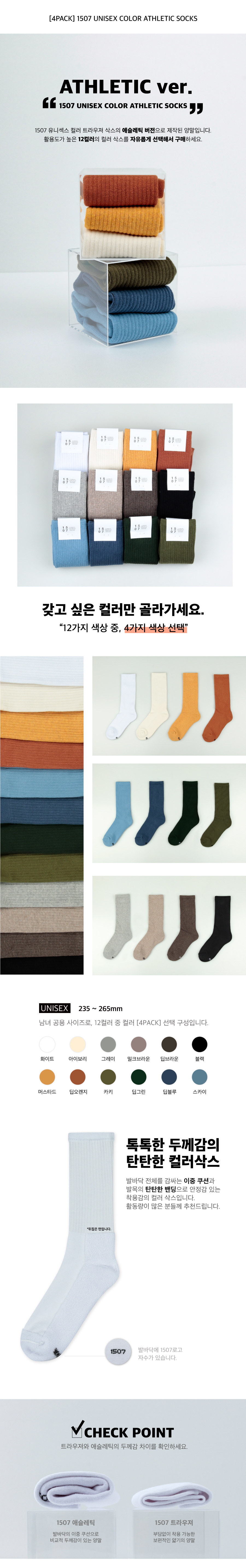 [4PACK] 1507 유니섹스 컬러 애슬레틱 삭스 - 컬러선택형