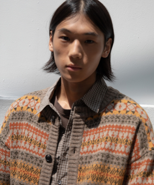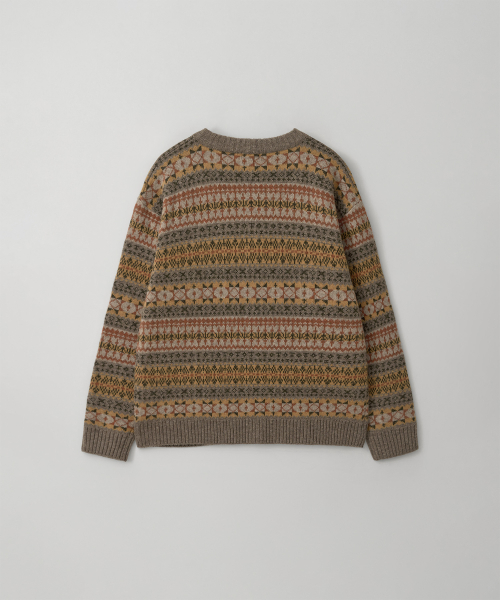 Fair-isle 패턴이 갖는 다소 튀는 색감과 거친 울소재, 클래식한 분위기에