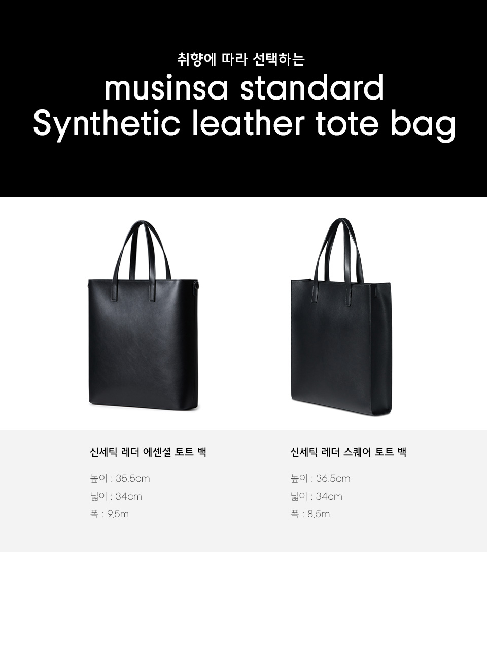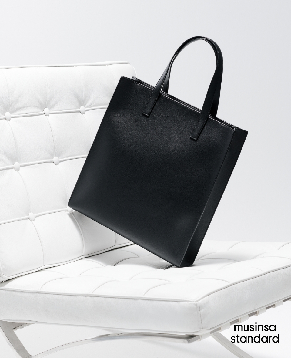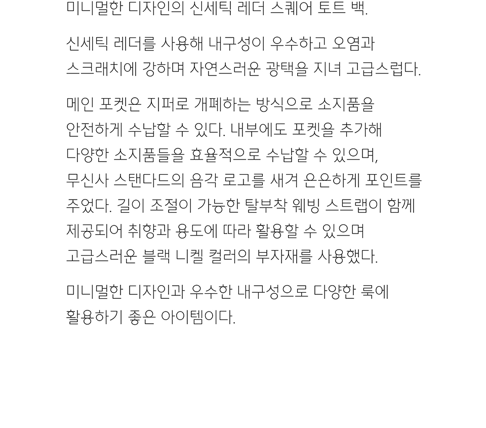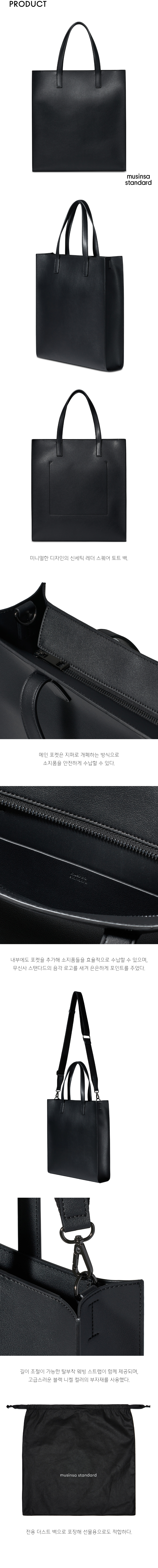 신세틱 레더 렉탱글 숄더 토트 백_미디엄 [블랙]