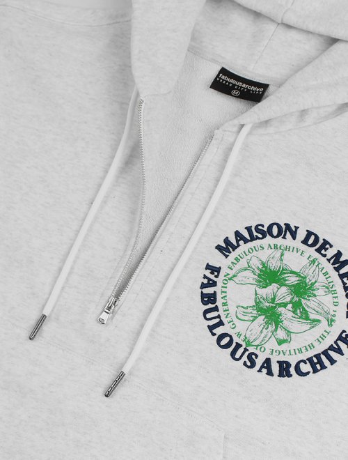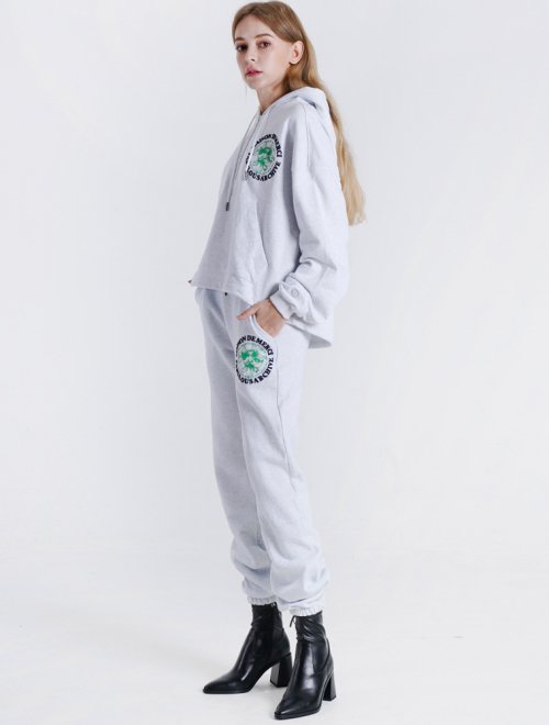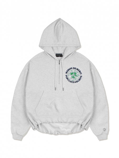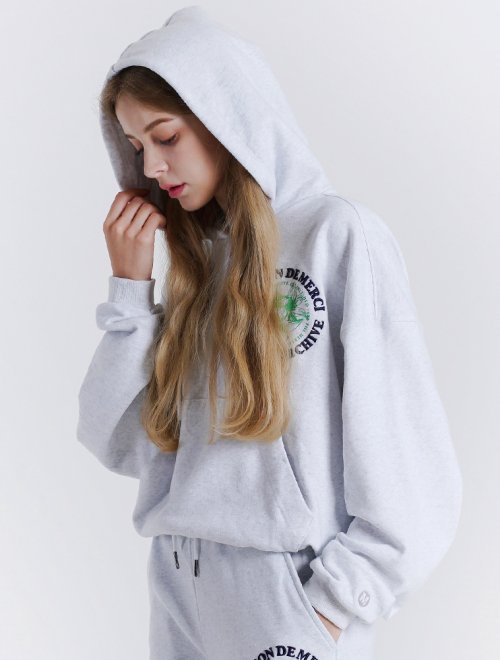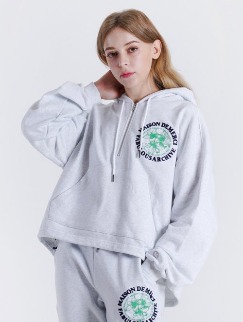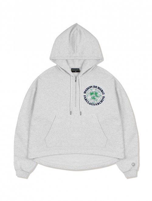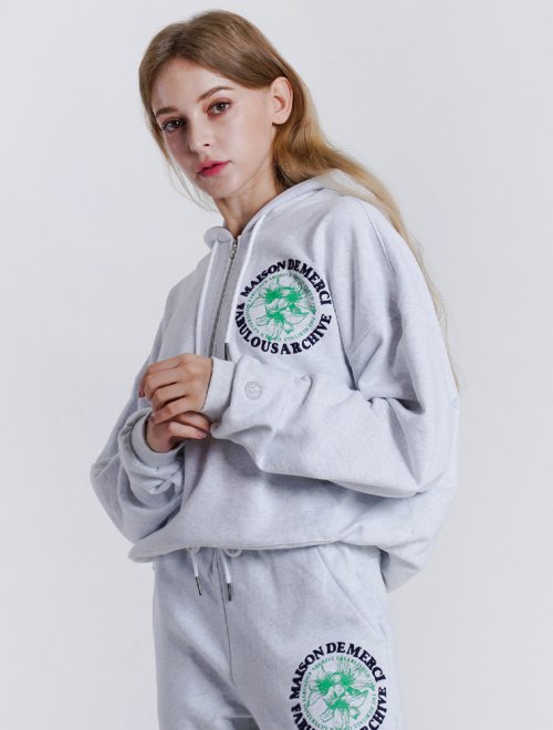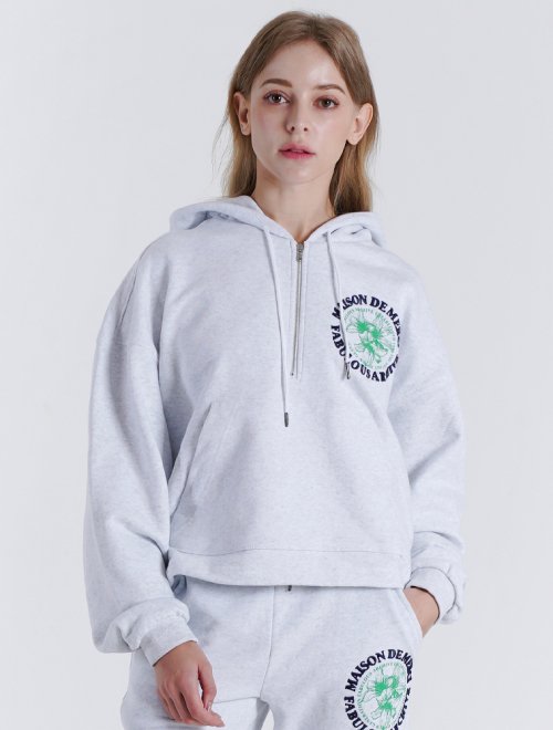 우먼즈 크롭 르 리스 자수 반집업 후드 라이트그레이(FCB3TS354W)