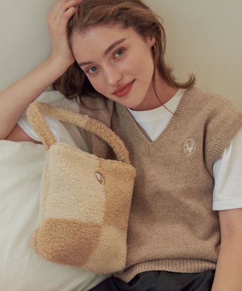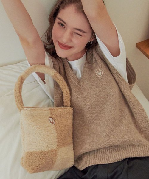 Checkerboard fur bag_beige