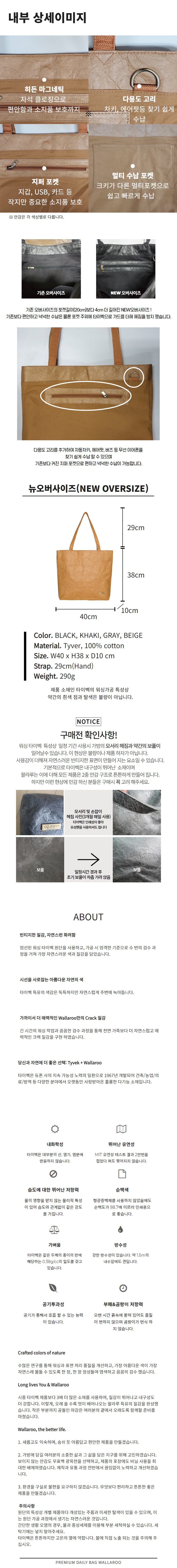 왈라루 빅사이즈 쇼퍼백 에코백 뉴오버사이즈 카키