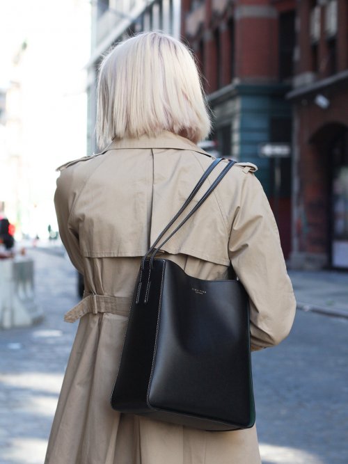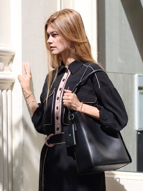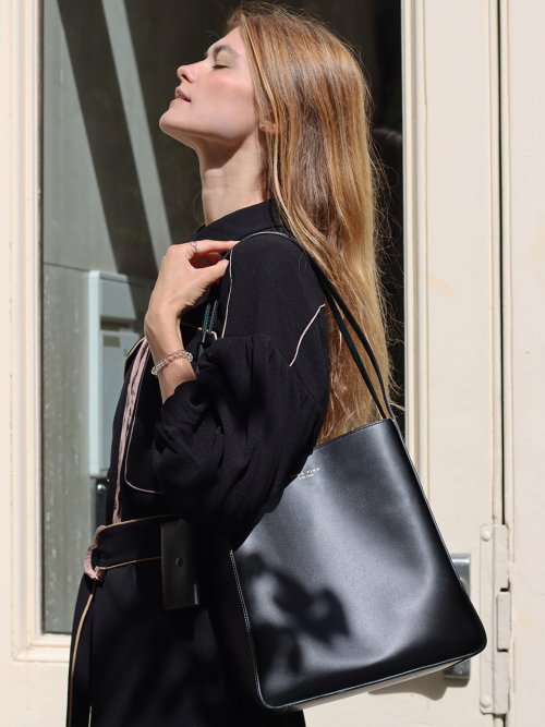 카프카 호보 블랙 - 100% 양면 가죽 버켓 호보
