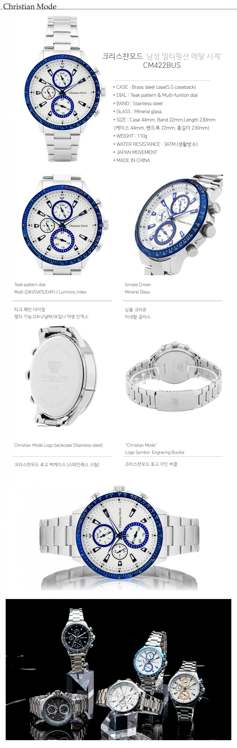 남성 멀티펑션 메탈시계 CM422BUS