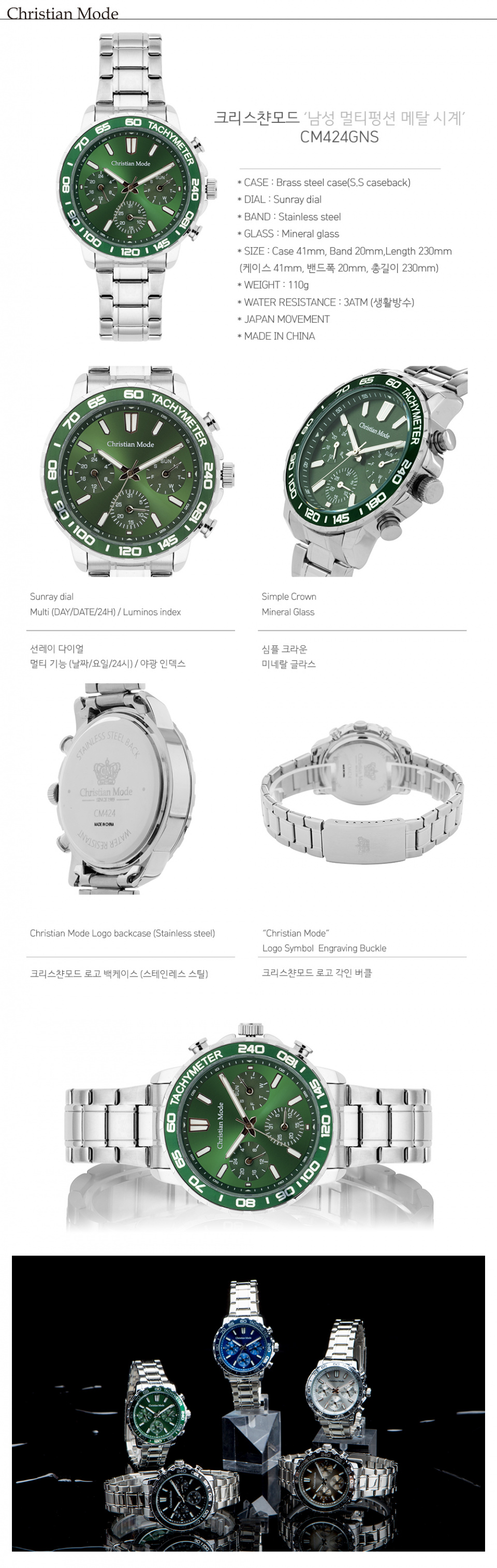 남성 멀티펑션 메탈시계 CM424GNS