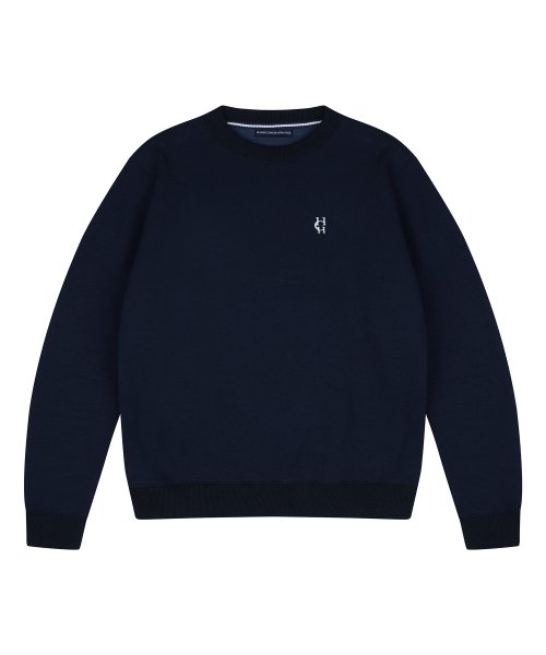 클래식 심볼 로고 크롭 맨투맨_네이비