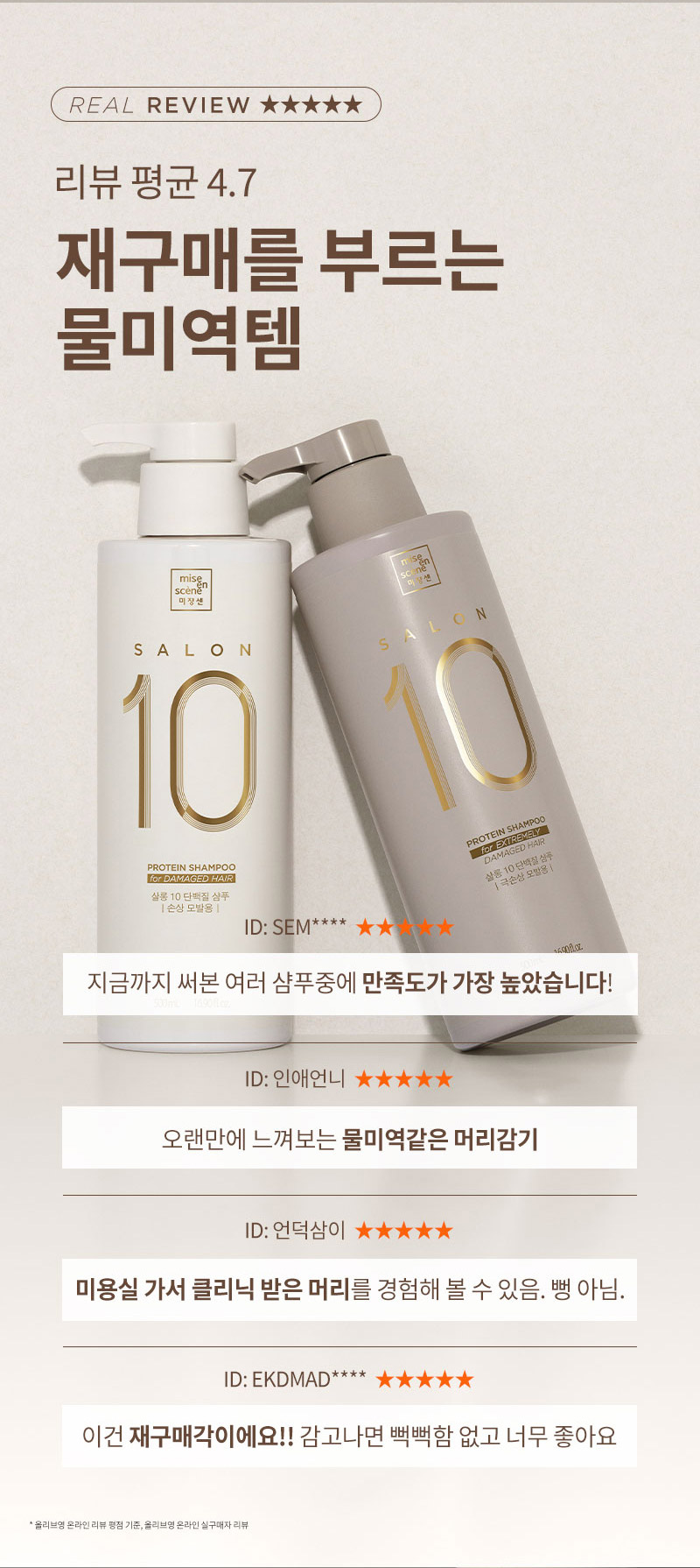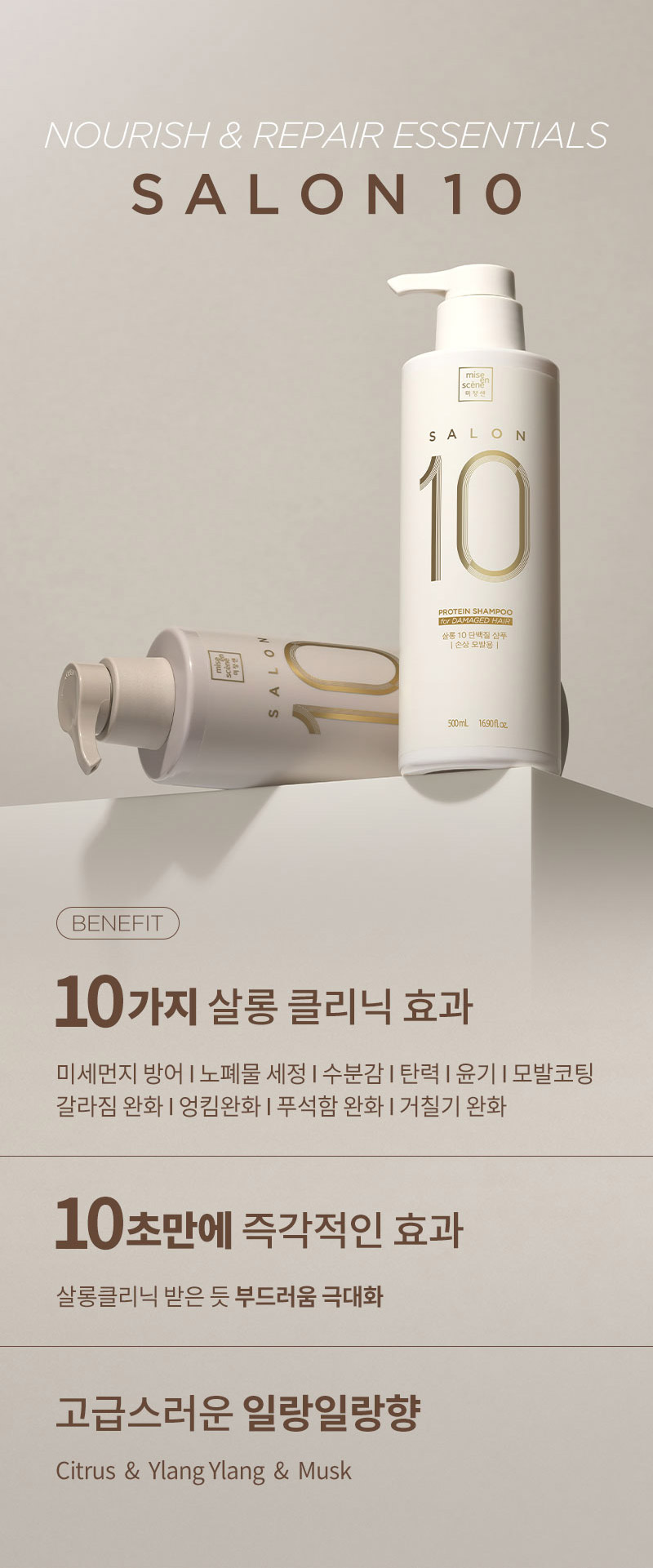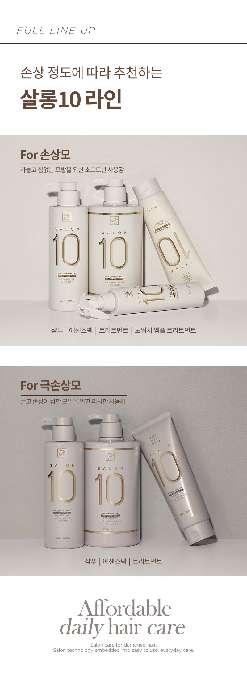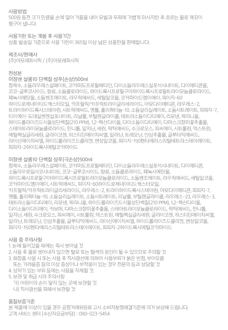 살롱10 단백질 샴푸 500ml+트리트먼트 250ml (손상모) SET