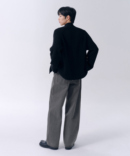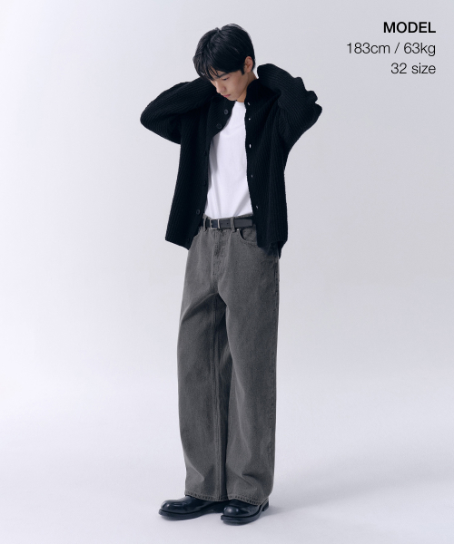 와이드 데님 팬츠 [워시드 블랙]