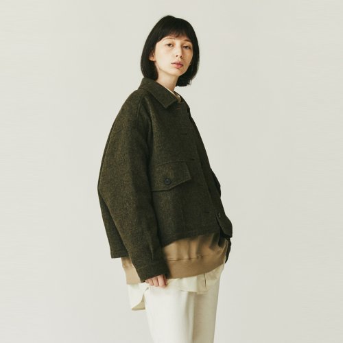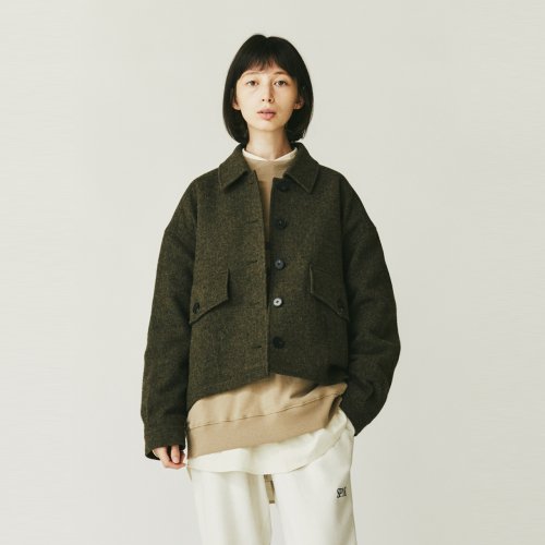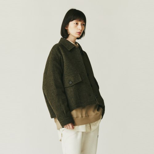 스코티쉬울 셔츠카라 트위드 자켓(여성)_카키