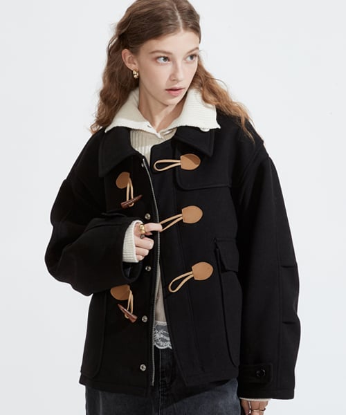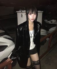 LOOSE FIT THREE BUTTON LEATHER JACKET_BLACK