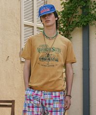 메사추세츠 그래픽 워시드 빈티지 반팔티 머스타드_FR2KT98U