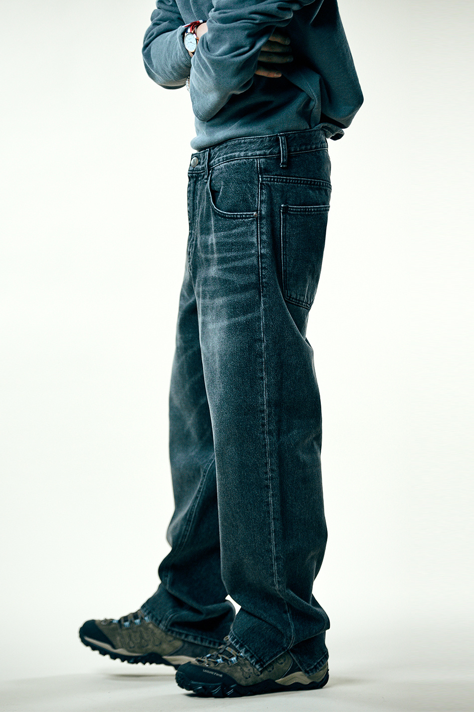 PT800WMB Wide Straight Washed Denim (Washed Mid Blue)