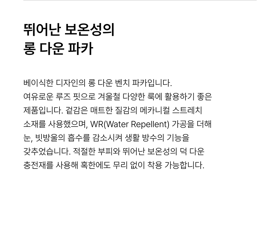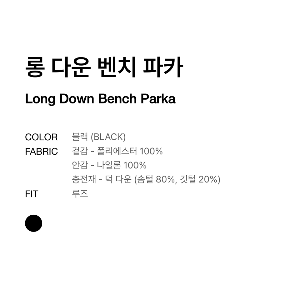 롱 다운 벤치 파카 [블랙]