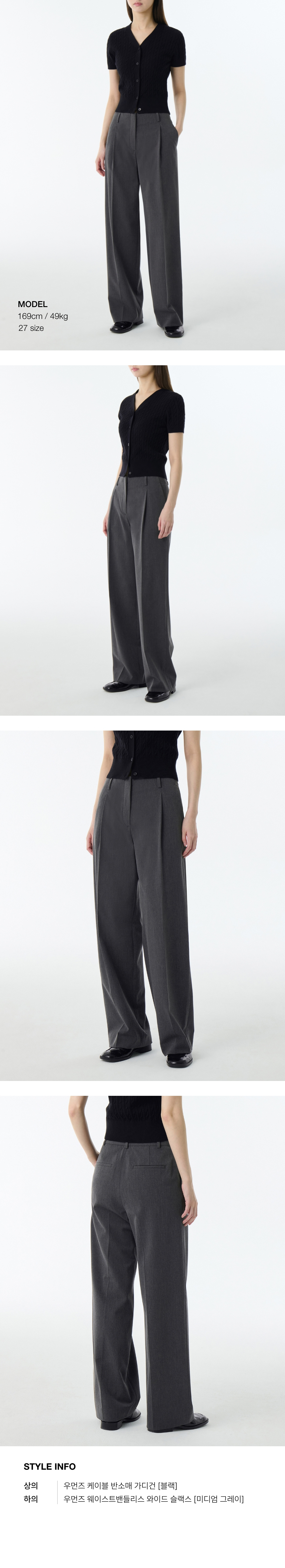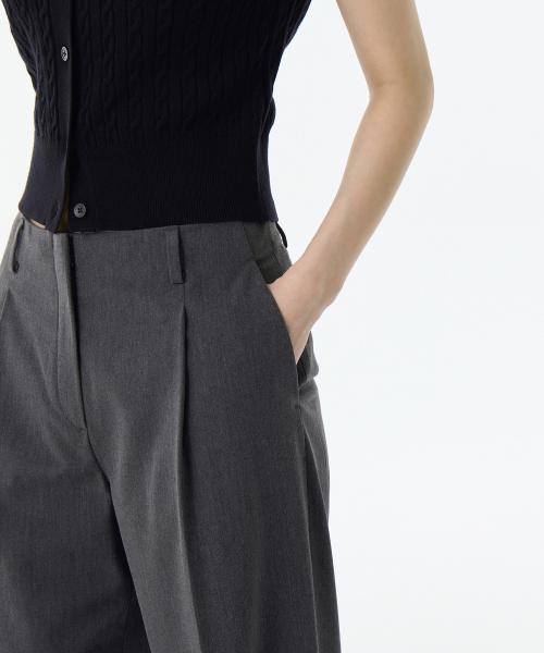 우먼즈 웨이스트밴들리스 와이드 슬랙스 [미디엄 그레이]